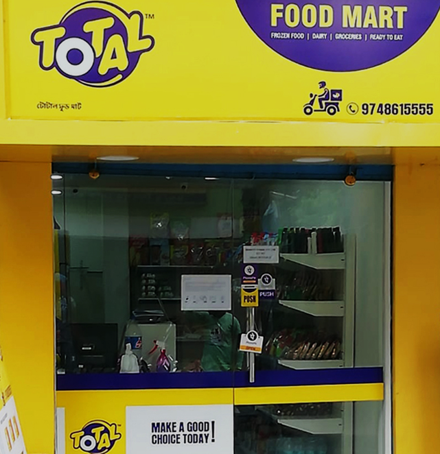 Total Foodmart has been conceptualized as a neighborhood retail chain to deliver a hassle-free buying experience to the consumer. At present there are 15 multi-brand convenience stores under the Total Foodmart brand across Kolkata, offering a large assortment of products such as fresh chilled chicken, frozen chicken, value-added vegetarian & non-vegetarian products, dairy products, confectionery, groceries, personal care products & many more.